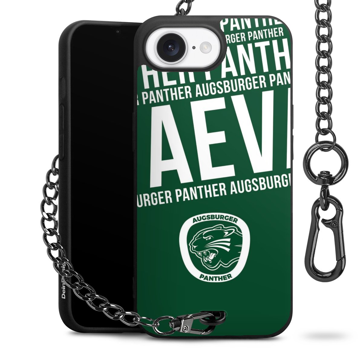 Die mattschwarze Silikon-Handyhülle besteht aus robustem TPU (thermoplastisches Polyurethan). Sie ist flexibel und schützt Dein Smartphone vor Stößen und Kratzern. Die Kette sowie der Karabinerhaken sind aus Metall in Gunmetal-Optik gefertigt. Für dieses Produkt kommen ausschließlich TÜV-geprüfte Materialien zum Einsatz.