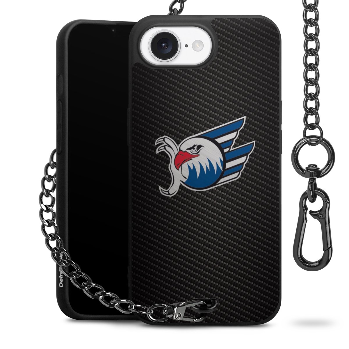 Die mattschwarze Silikon-Handyhülle besteht aus robustem TPU (thermoplastisches Polyurethan). Sie ist flexibel und schützt Dein Smartphone vor Stößen und Kratzern. Die Kette sowie der Karabinerhaken sind aus Metall in Gunmetal-Optik gefertigt. Für dieses Produkt kommen ausschließlich TÜV-geprüfte Materialien zum Einsatz.