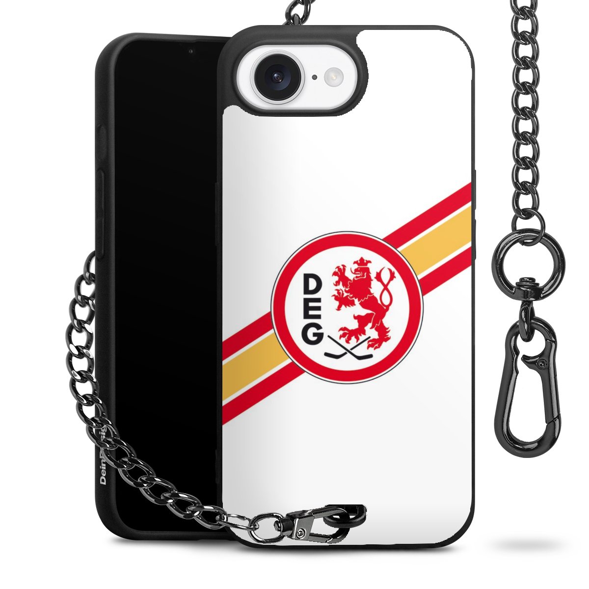 Die mattschwarze Silikon-Handyhülle besteht aus robustem TPU (thermoplastisches Polyurethan). Sie ist flexibel und schützt Dein Smartphone vor Stößen und Kratzern. Die Kette sowie der Karabinerhaken sind aus Metall in Gunmetal-Optik gefertigt. Für dieses Produkt kommen ausschließlich TÜV-geprüfte Materialien zum Einsatz.