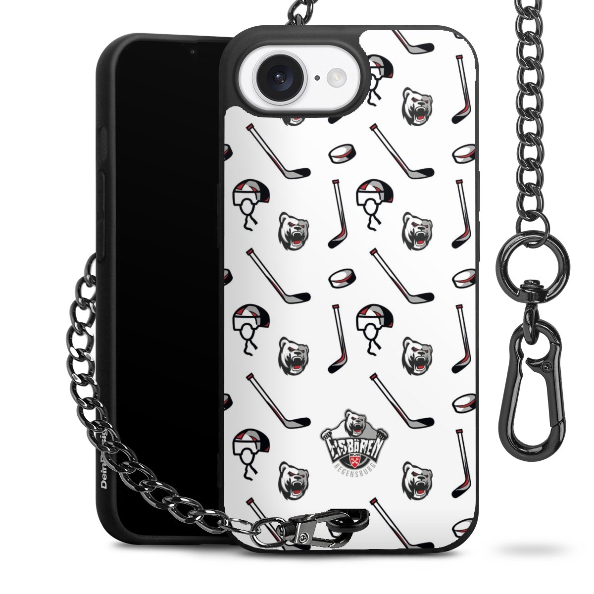 Die mattschwarze Silikon-Handyhülle besteht aus robustem TPU (thermoplastisches Polyurethan). Sie ist flexibel und schützt Dein Smartphone vor Stößen und Kratzern. Die Kette sowie der Karabinerhaken sind aus Metall in Gunmetal-Optik gefertigt. Für dieses Produkt kommen ausschließlich TÜV-geprüfte Materialien zum Einsatz.