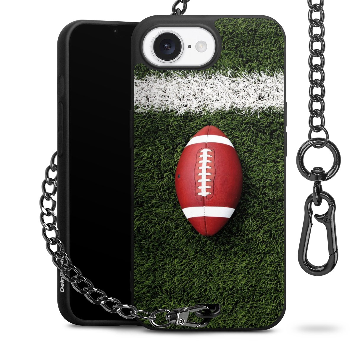 - Mattschwarze Handyhülle mit Metallkette