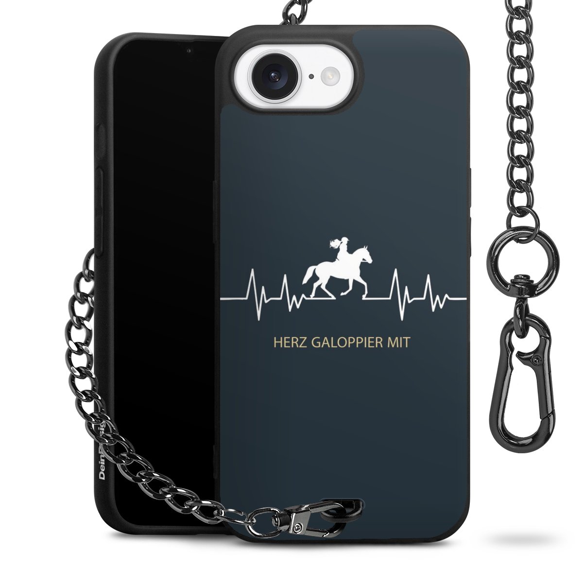 - Mattschwarze Handyhülle mit Metallkette