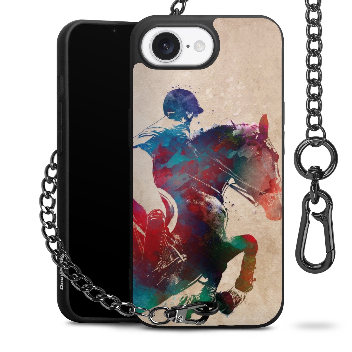 • Mattschwarze Handyhülle mit Metallkette