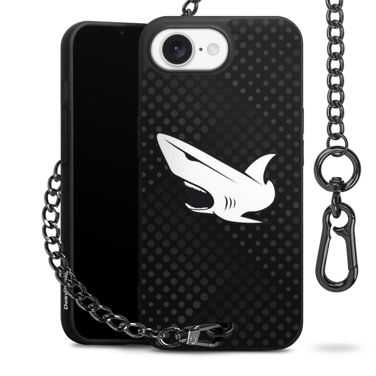 Die mattschwarze Silikon-Handyhülle besteht aus robustem TPU (thermoplastisches Polyurethan). Sie ist flexibel und schützt Dein Smartphone vor Stößen und Kratzern. Die Kette sowie der Karabinerhaken sind aus Metall in Gunmetal-Optik gefertigt. Für dieses Produkt kommen ausschließlich TÜV-geprüfte Materialien zum Einsatz.
