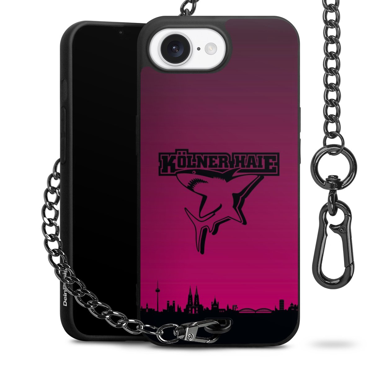 Die mattschwarze Silikon-Handyhülle besteht aus robustem TPU (thermoplastisches Polyurethan). Sie ist flexibel und schützt Dein Smartphone vor Stößen und Kratzern. Die Kette sowie der Karabinerhaken sind aus Metall in Gunmetal-Optik gefertigt. Für dieses Produkt kommen ausschließlich TÜV-geprüfte Materialien zum Einsatz.