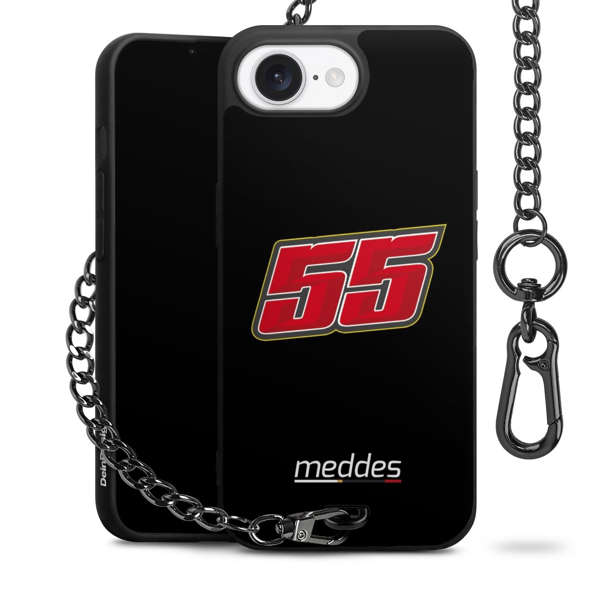 Die mattschwarze Silikon-Handyhülle besteht aus robustem TPU (thermoplastisches Polyurethan). Sie ist flexibel und schützt Dein Smartphone vor Stößen und Kratzern. Die Kette sowie der Karabinerhaken sind aus Metall in Gunmetal-Optik gefertigt. Für dieses Produkt kommen ausschließlich TÜV-geprüfte Materialien zum Einsatz.