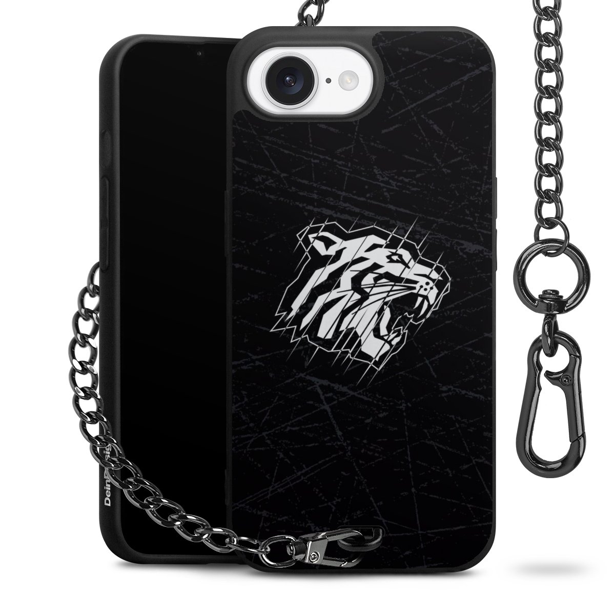 Die mattschwarze Silikon-Handyhülle besteht aus robustem TPU (thermoplastisches Polyurethan). Sie ist flexibel und schützt Dein Smartphone vor Stößen und Kratzern. Die Kette sowie der Karabinerhaken sind aus Metall in Gunmetal-Optik gefertigt. Für dieses Produkt kommen ausschließlich TÜV-geprüfte Materialien zum Einsatz.