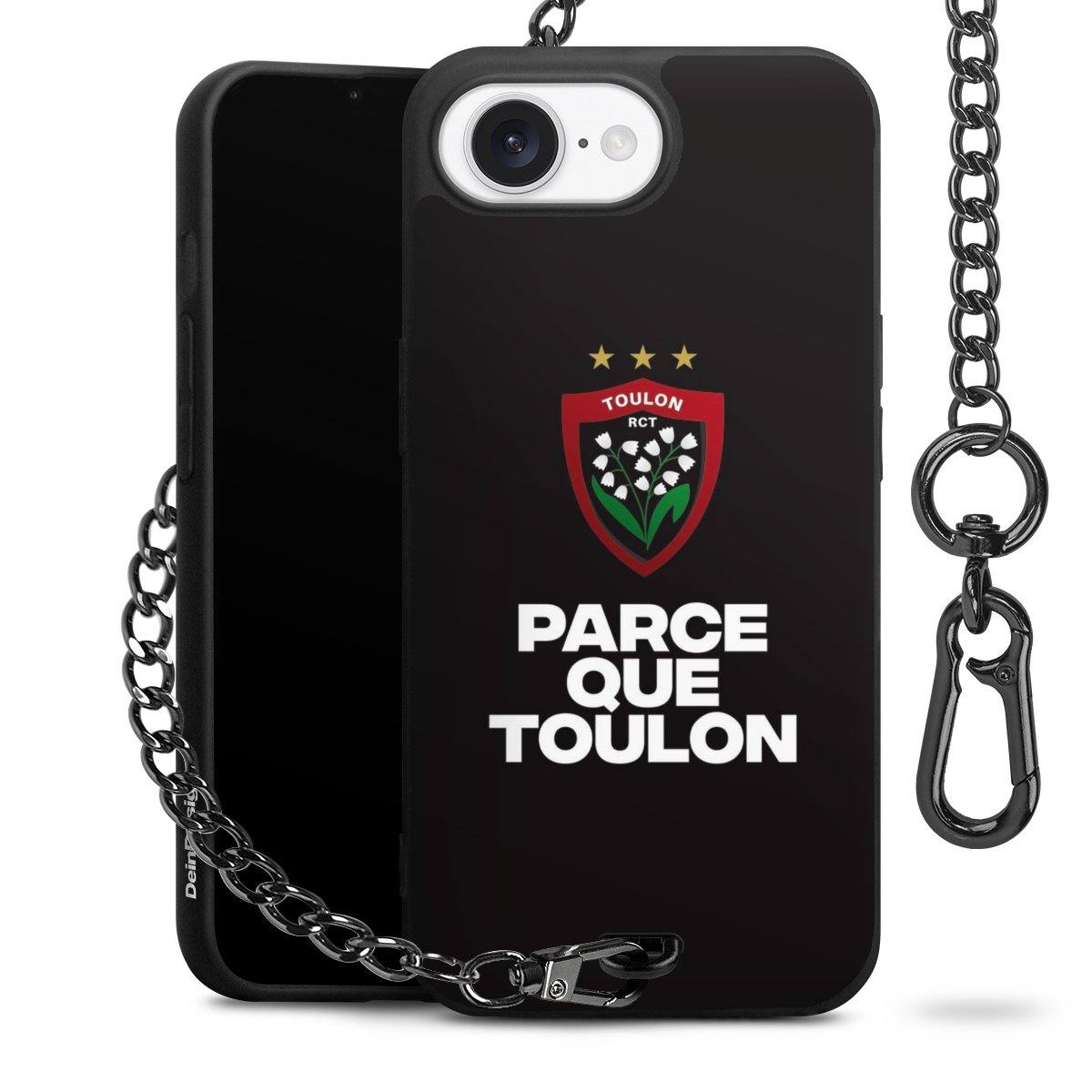 - Mattschwarze Handyhülle mit Metallkette