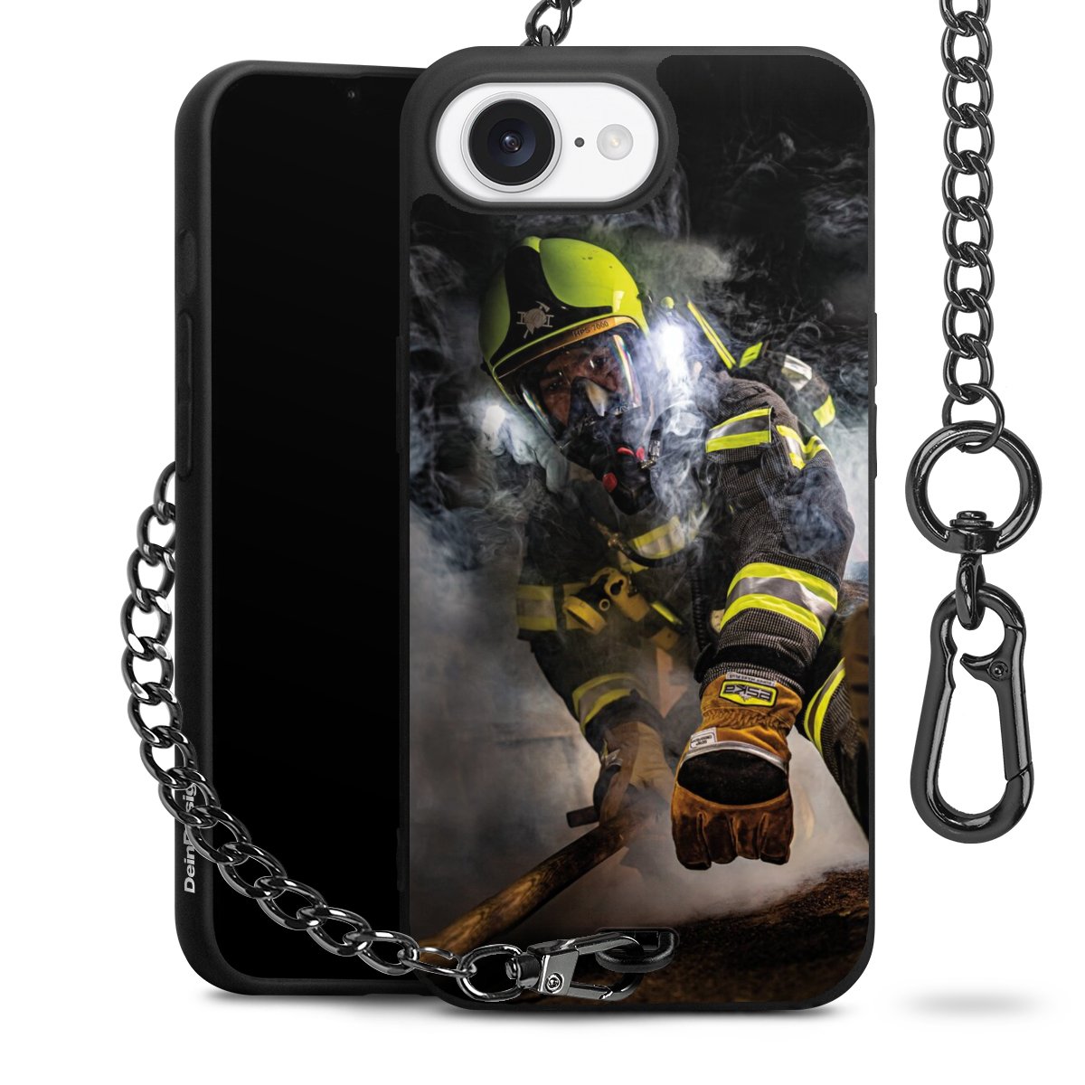 Die mattschwarze Silikon-Handyhülle besteht aus robustem TPU (thermoplastisches Polyurethan). Sie ist flexibel und schützt Dein Smartphone vor Stößen und Kratzern. Die Kette sowie der Karabinerhaken sind aus Metall in Gunmetal-Optik gefertigt. Für dieses Produkt kommen ausschließlich TÜV-geprüfte Materialien zum Einsatz.
