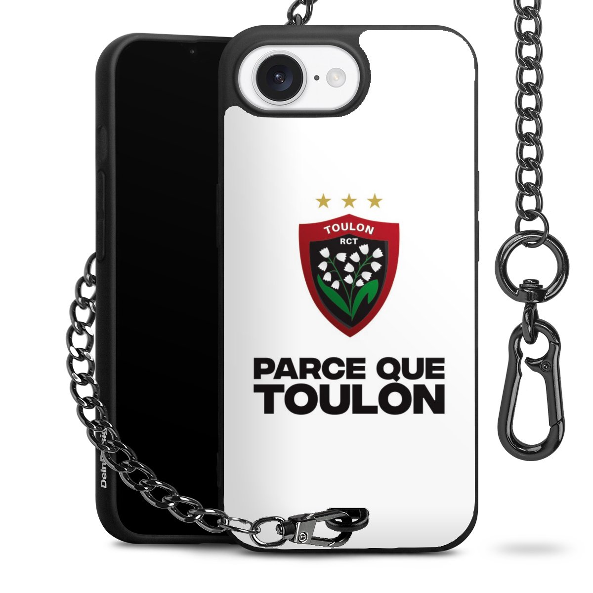 Die mattschwarze Silikon-Handyhülle besteht aus robustem TPU (thermoplastisches Polyurethan). Sie ist flexibel und schützt Dein Smartphone vor Stößen und Kratzern. Die Kette sowie der Karabinerhaken sind aus Metall in Gunmetal-Optik gefertigt. Für dieses Produkt kommen ausschließlich TÜV-geprüfte Materialien zum Einsatz.