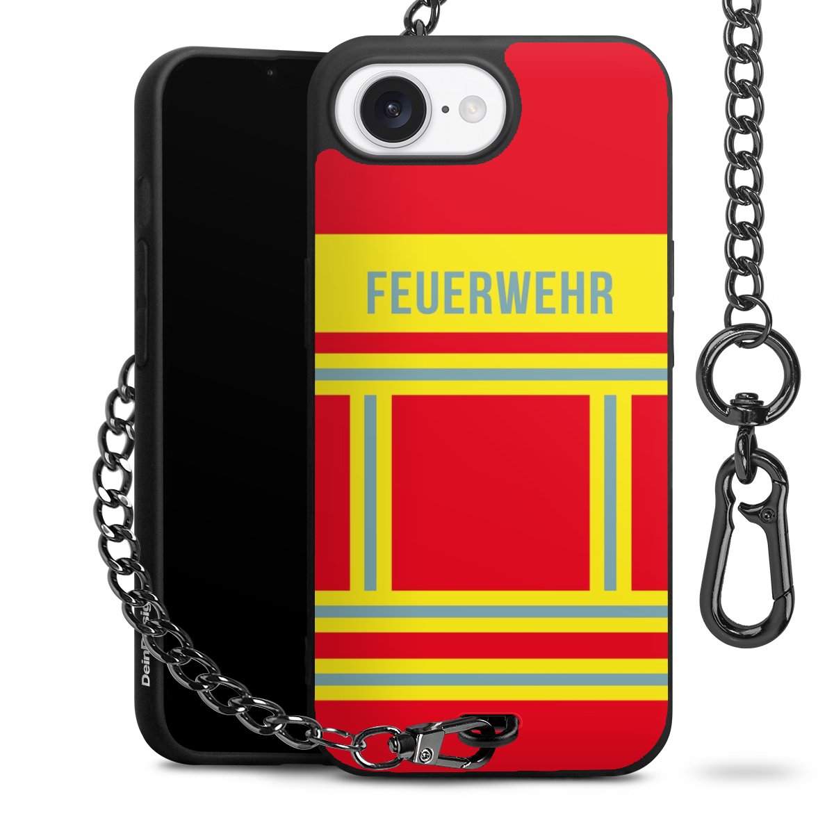 - Mattschwarze Handyhülle mit Metallkette
