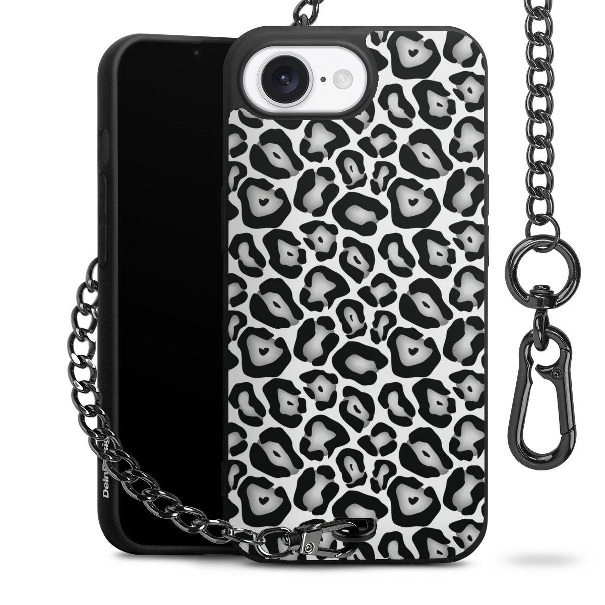 - Mattschwarze Handyhülle mit Metallkette