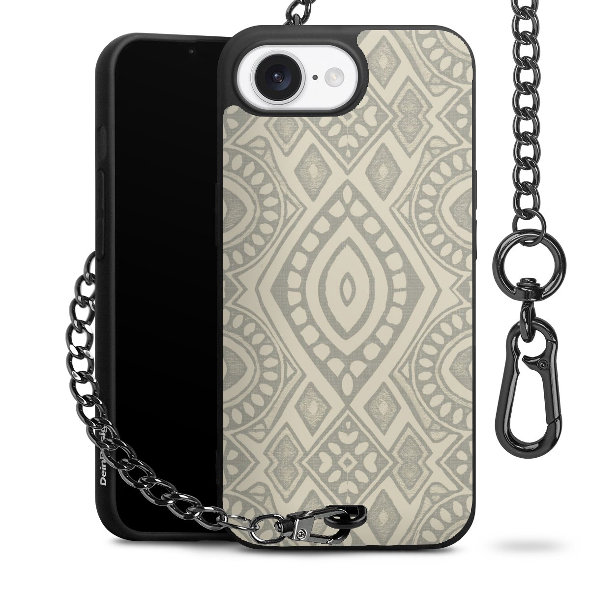 • Mattschwarze Handyhülle mit Metallkette
