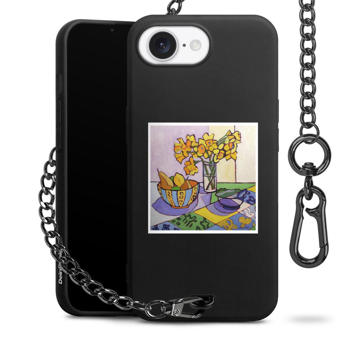 - Mattschwarze Handyhülle mit Metallkette