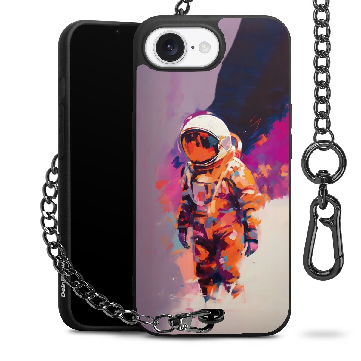 • Mattschwarze Handyhülle mit Metallkette