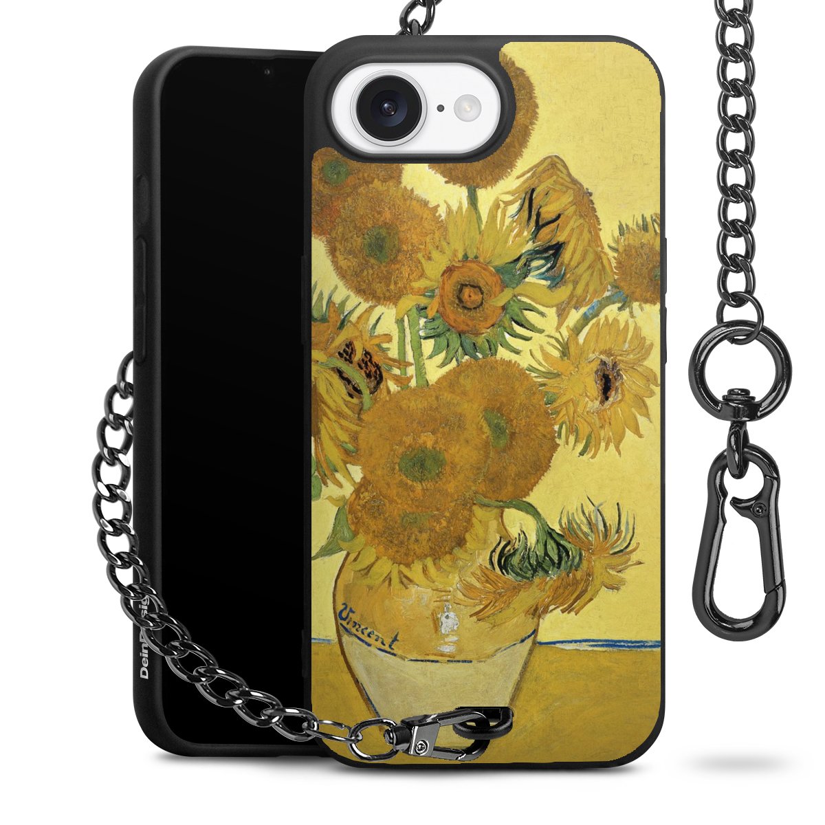 Die mattschwarze Silikon-Handyhülle besteht aus robustem TPU (thermoplastisches Polyurethan). Sie ist flexibel und schützt Dein Smartphone vor Stößen und Kratzern. Die Kette sowie der Karabinerhaken sind aus Metall in Gunmetal-Optik gefertigt. Für dieses Produkt kommen ausschließlich TÜV-geprüfte Materialien zum Einsatz.