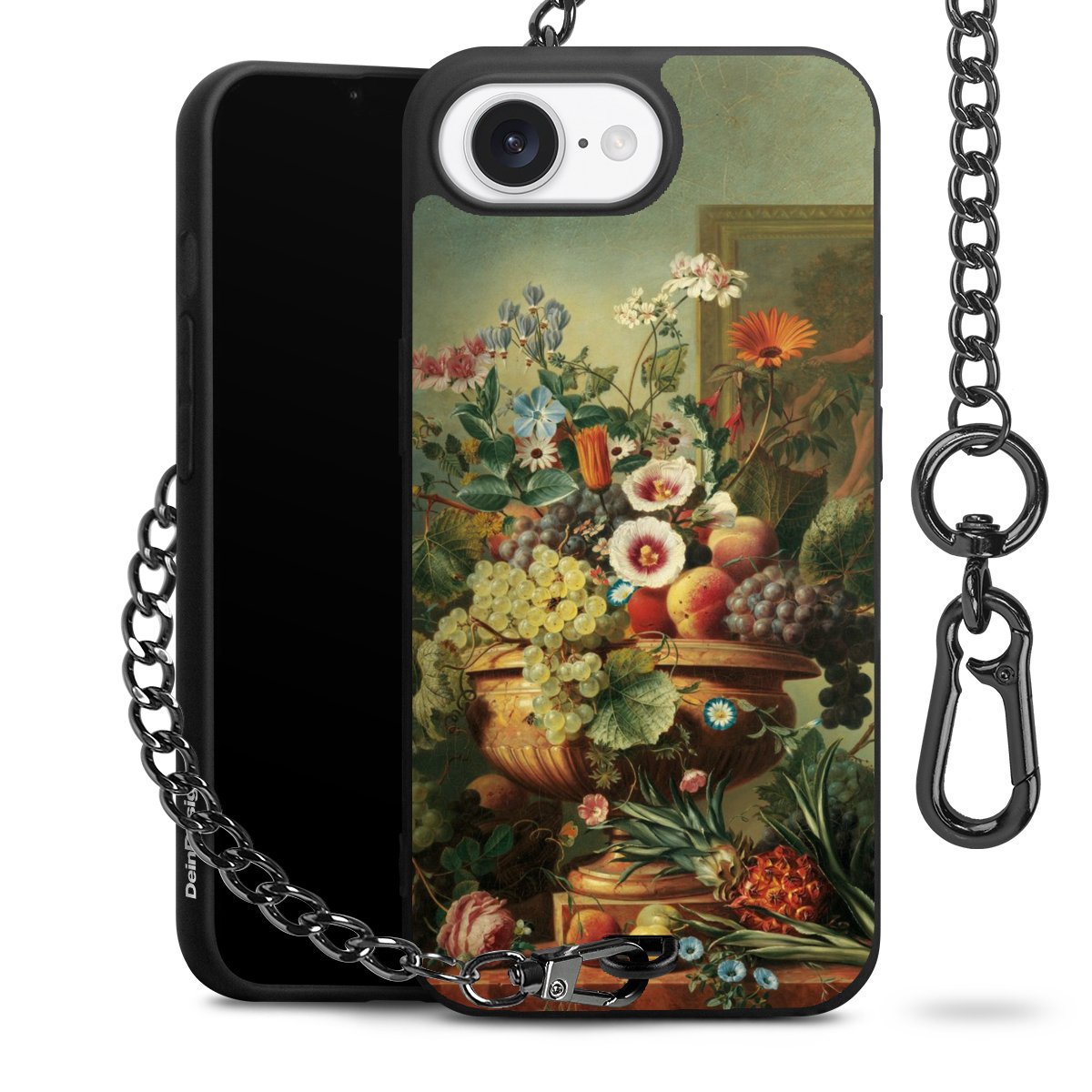 Die mattschwarze Silikon-Handyhülle besteht aus robustem TPU (thermoplastisches Polyurethan). Sie ist flexibel und schützt Dein Smartphone vor Stößen und Kratzern. Die Kette sowie der Karabinerhaken sind aus Metall in Gunmetal-Optik gefertigt. Für dieses Produkt kommen ausschließlich TÜV-geprüfte Materialien zum Einsatz.