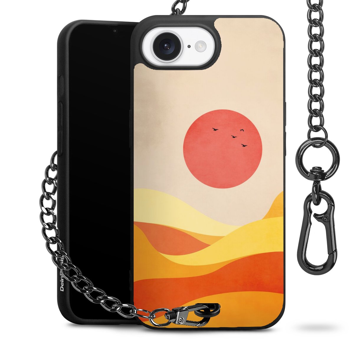 Die mattschwarze Silikon-Handyhülle besteht aus robustem TPU (thermoplastisches Polyurethan). Sie ist flexibel und schützt Dein Smartphone vor Stößen und Kratzern. Die Kette sowie der Karabinerhaken sind aus Metall in Gunmetal-Optik gefertigt. Für dieses Produkt kommen ausschließlich TÜV-geprüfte Materialien zum Einsatz.