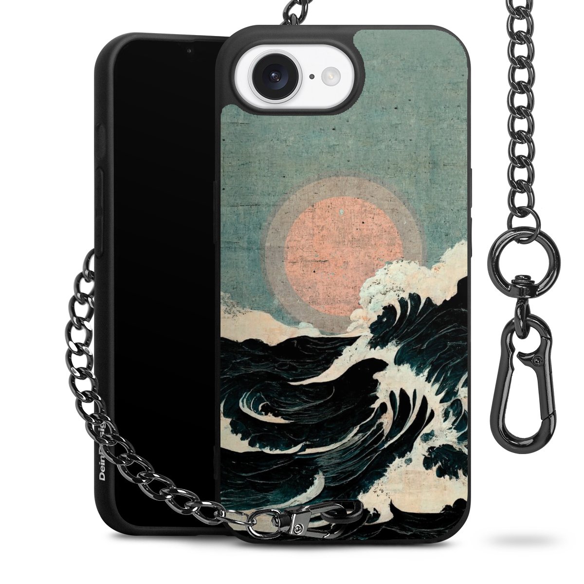 • Mattschwarze Handyhülle mit Metallkette