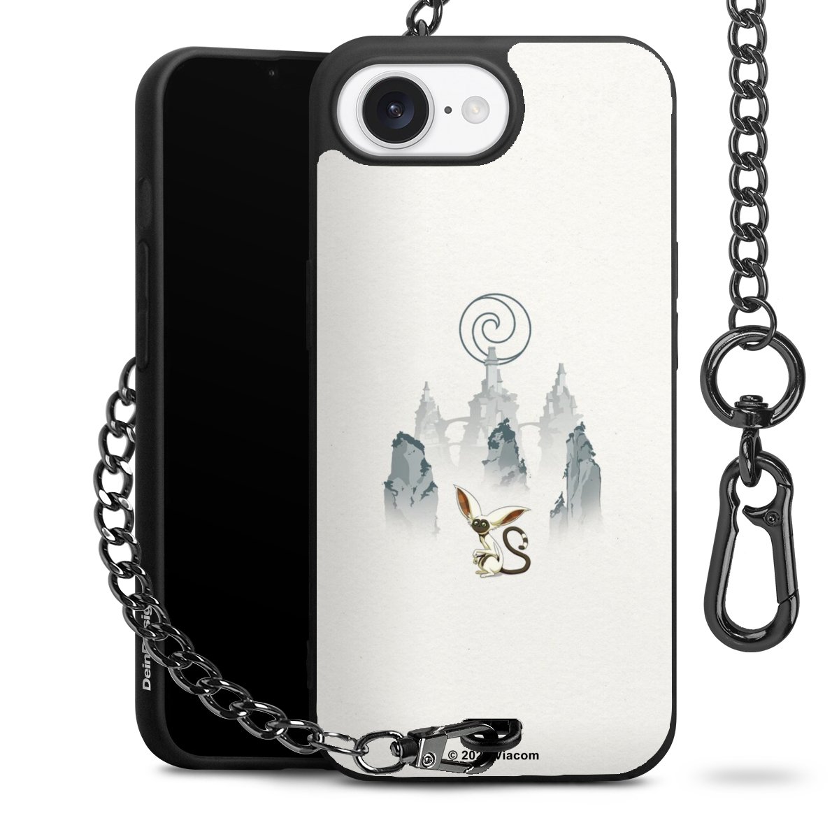 Die Handyhülle verfügt über eine mittig am unteren Rand platzierte Öse, an der die Metallkette stabil befestigt ist. Bestelle die Hülle einfach für Dein Smartphone-Modell, dann passt sie wie angegossen und Du brauchst sie bloß einmal anzudrücken. Handy in die Tasche, Karabiner an den Hosenbund – schon kann die Party starten.
