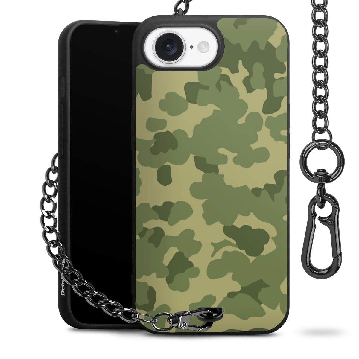 Die mattschwarze Silikon-Handyhülle besteht aus robustem TPU (thermoplastisches Polyurethan). Sie ist flexibel und schützt Dein Smartphone vor Stößen und Kratzern. Die Kette sowie der Karabinerhaken sind aus Metall in Gunmetal-Optik gefertigt. Für dieses Produkt kommen ausschließlich TÜV-geprüfte Materialien zum Einsatz.