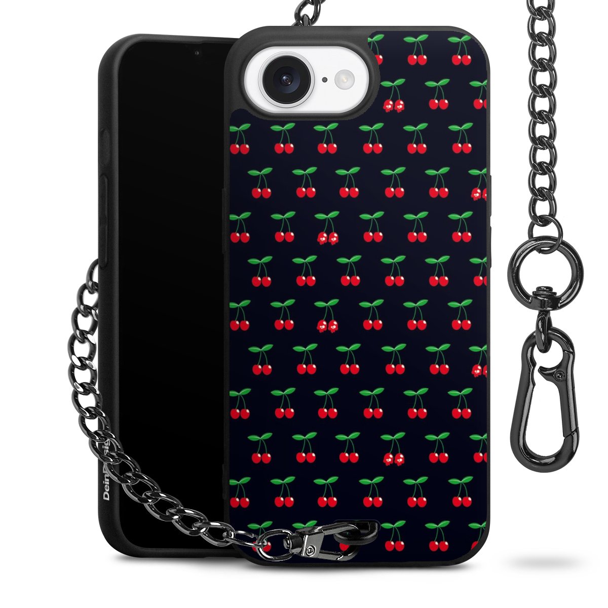 - Mattschwarze Handyhülle mit Metallkette