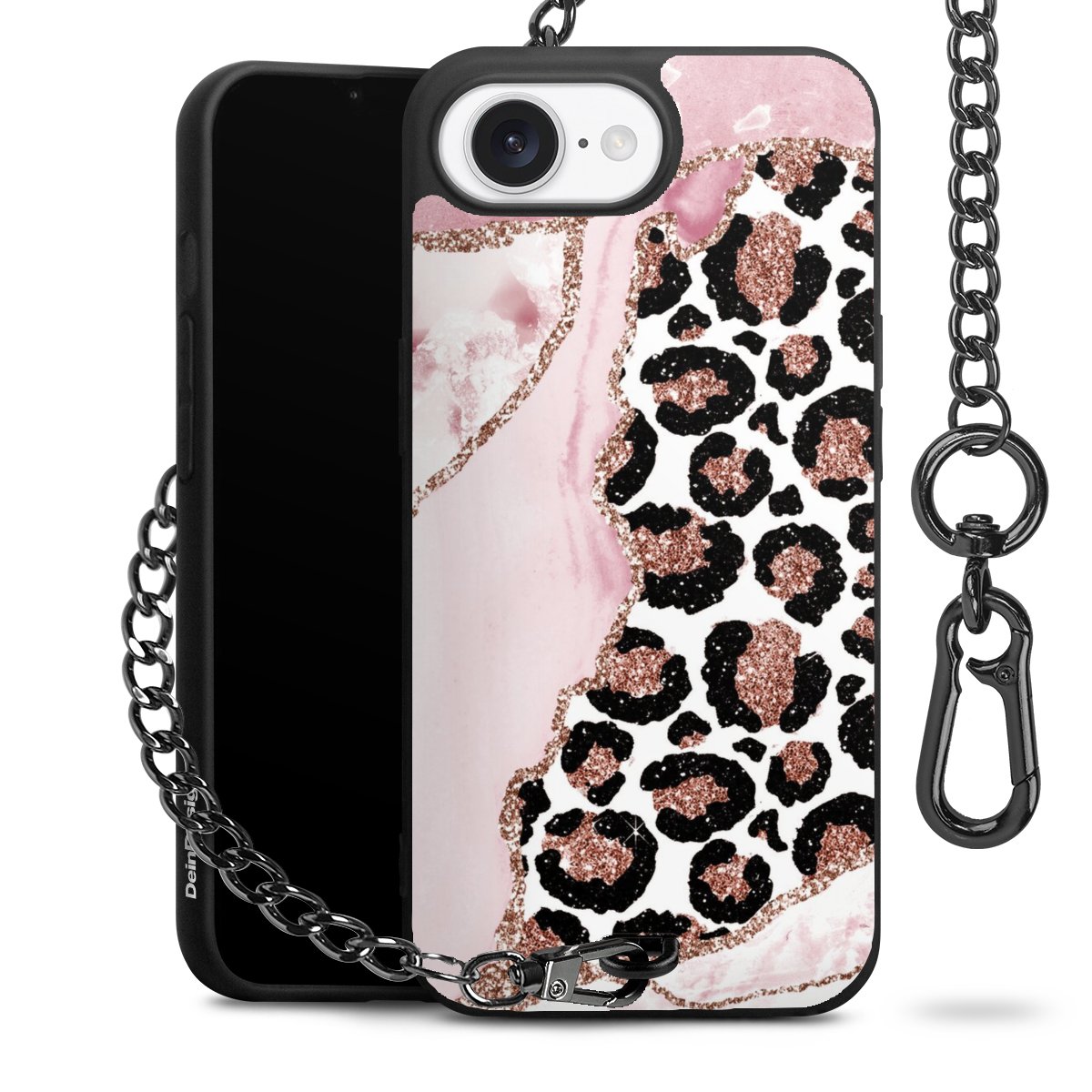 • Mattschwarze Handyhülle mit Metallkette