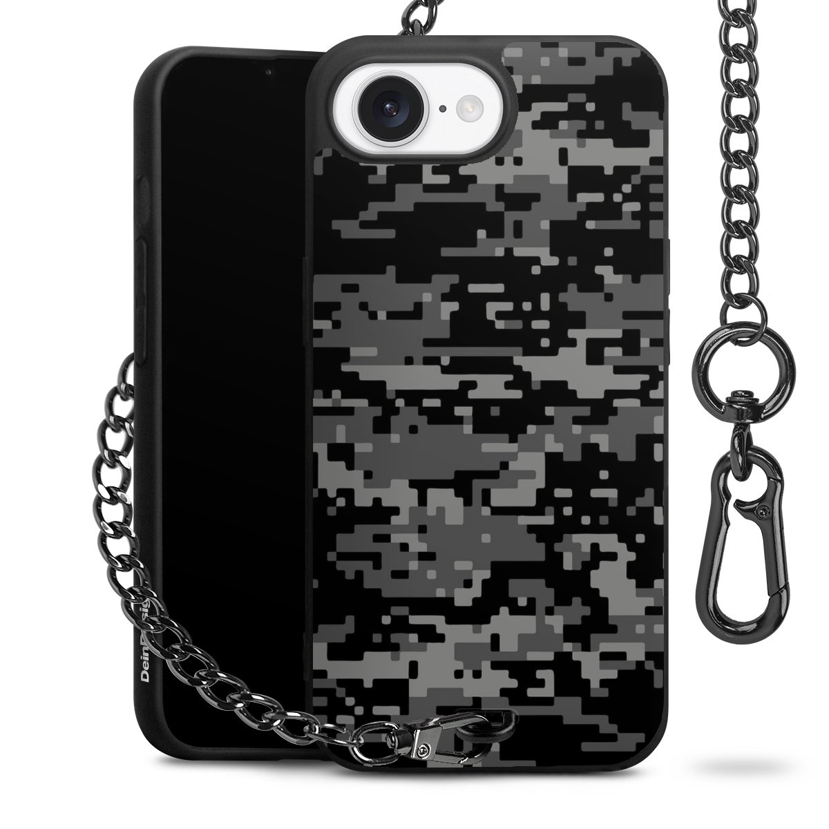 • Mattschwarze Handyhülle mit Metallkette