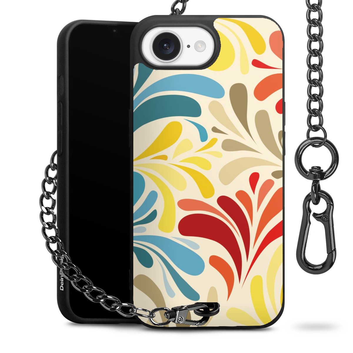 - Mattschwarze Handyhülle mit Metallkette