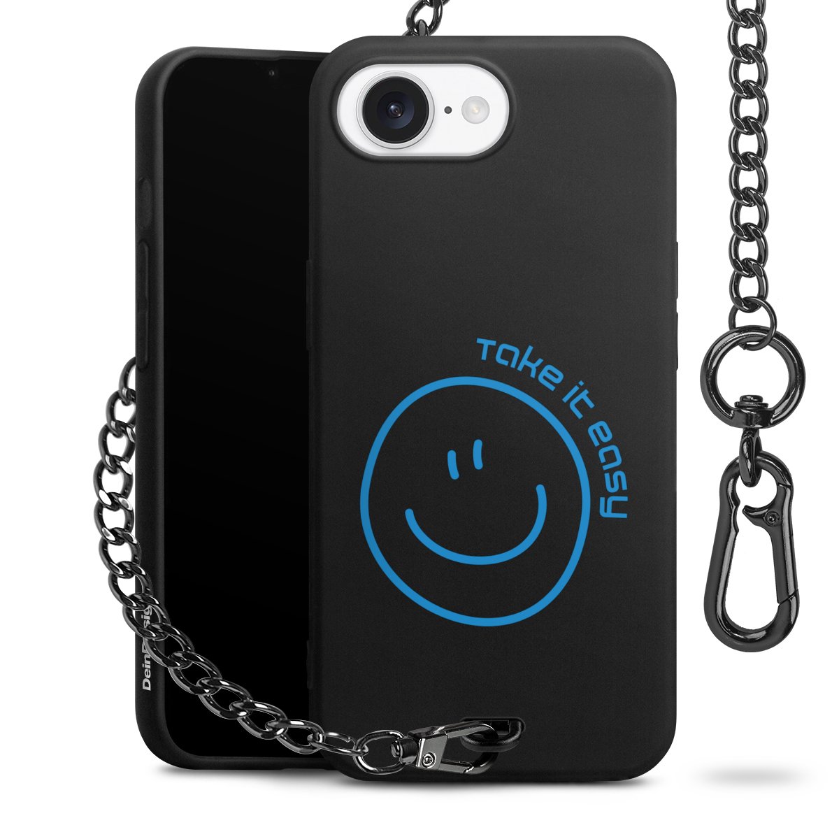 Die mattschwarze Silikon-Handyhülle besteht aus robustem TPU (thermoplastisches Polyurethan). Sie ist flexibel und schützt Dein Smartphone vor Stößen und Kratzern. Die Kette sowie der Karabinerhaken sind aus Metall in Gunmetal-Optik gefertigt. Für dieses Produkt kommen ausschließlich TÜV-geprüfte Materialien zum Einsatz.