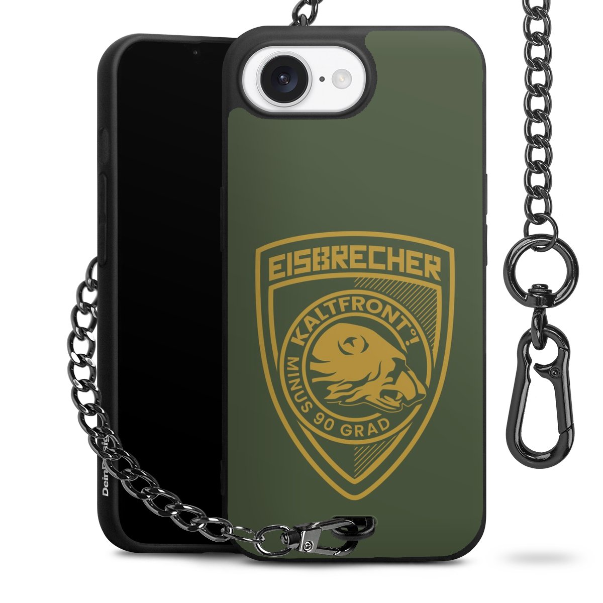 Die mattschwarze Silikon-Handyhülle besteht aus robustem TPU (thermoplastisches Polyurethan). Sie ist flexibel und schützt Dein Smartphone vor Stößen und Kratzern. Die Kette sowie der Karabinerhaken sind aus Metall in Gunmetal-Optik gefertigt. Für dieses Produkt kommen ausschließlich TÜV-geprüfte Materialien zum Einsatz.