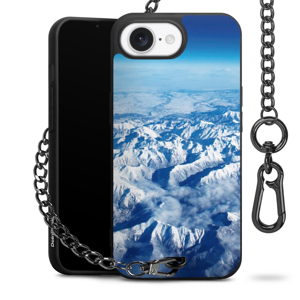 - Mattschwarze Handyhülle mit Metallkette