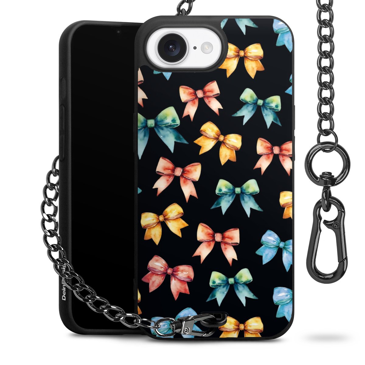 • Mattschwarze Handyhülle mit Metallkette