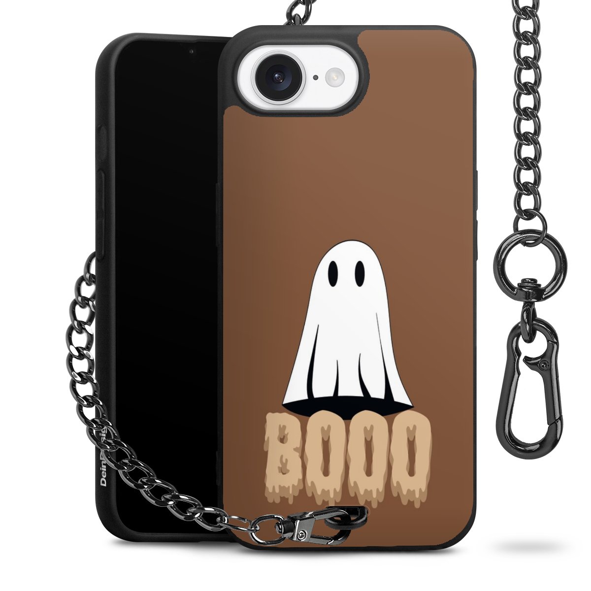 - Mattschwarze Handyhülle mit Metallkette