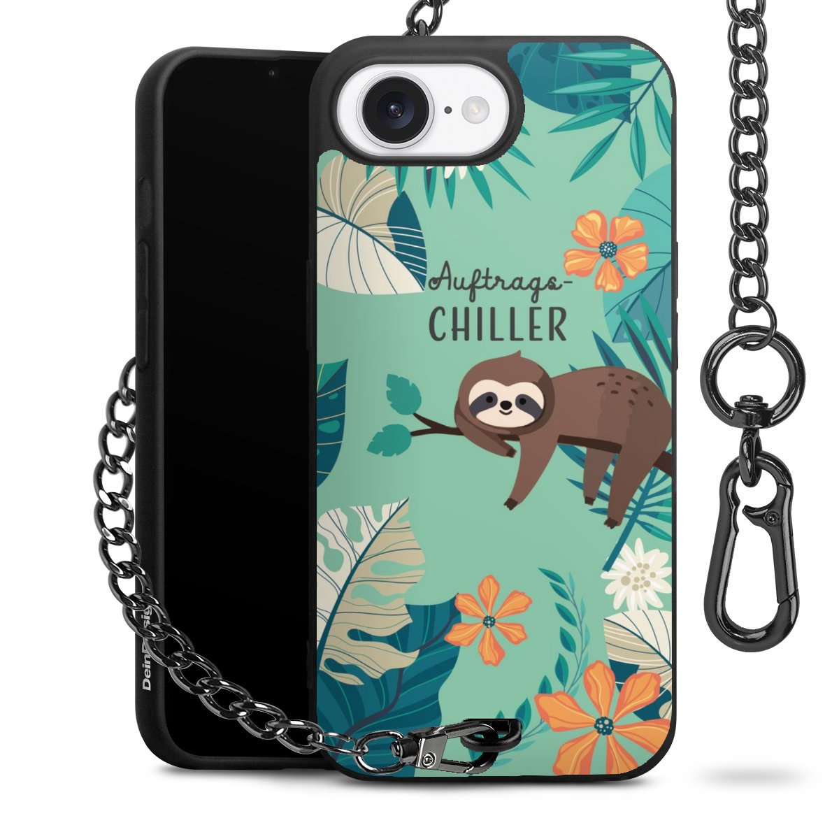 Die mattschwarze Silikon-Handyhülle besteht aus robustem TPU (thermoplastisches Polyurethan). Sie ist flexibel und schützt Dein Smartphone vor Stößen und Kratzern. Die Kette sowie der Karabinerhaken sind aus Metall in Gunmetal-Optik gefertigt. Für dieses Produkt kommen ausschließlich TÜV-geprüfte Materialien zum Einsatz.
