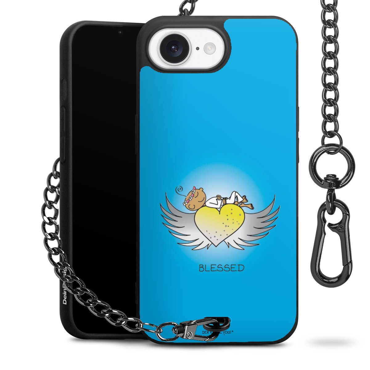 Die mattschwarze Silikon-Handyhülle besteht aus robustem TPU (thermoplastisches Polyurethan). Sie ist flexibel und schützt Dein Smartphone vor Stößen und Kratzern. Die Kette sowie der Karabinerhaken sind aus Metall in Gunmetal-Optik gefertigt. Für dieses Produkt kommen ausschließlich TÜV-geprüfte Materialien zum Einsatz.