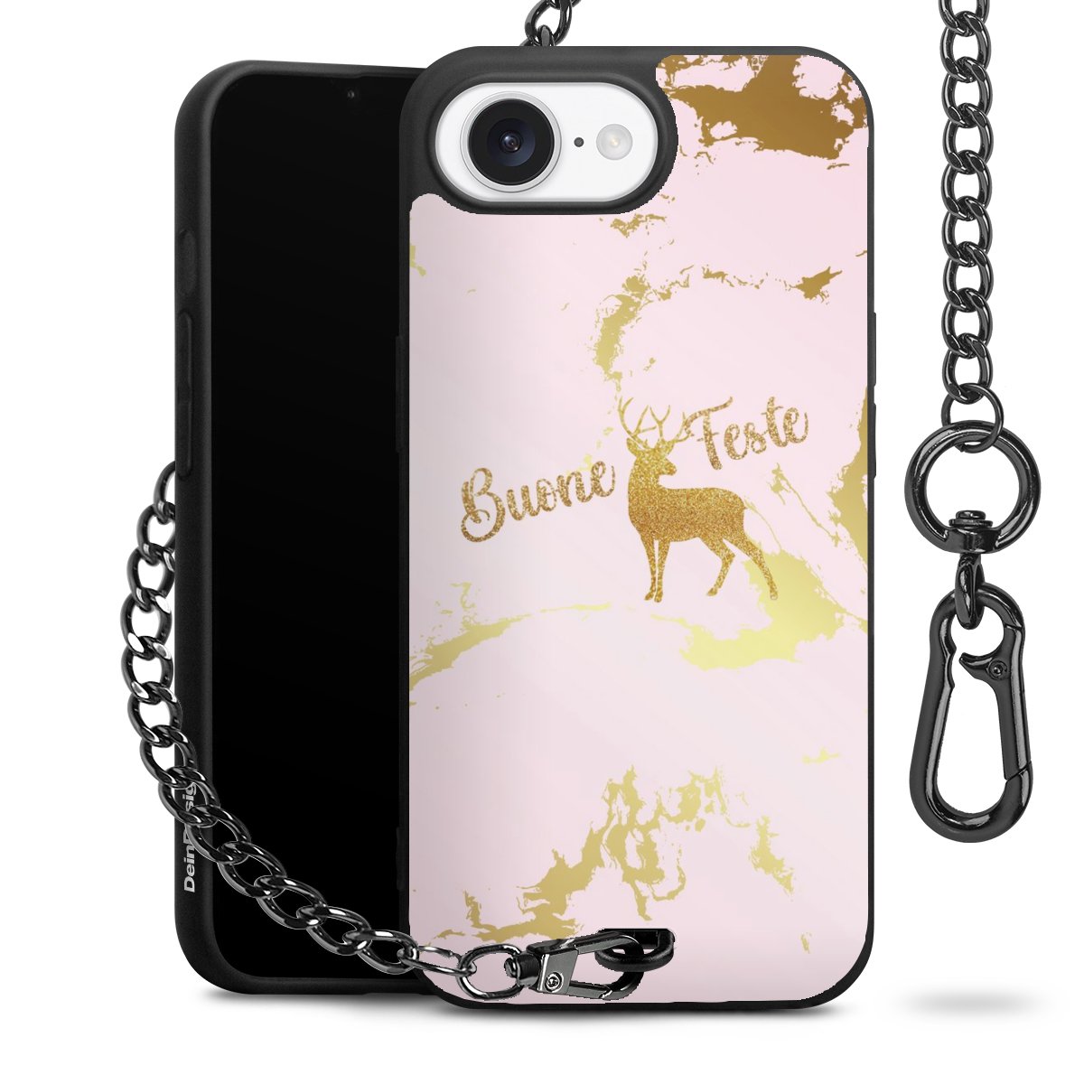 - Mattschwarze Handyhülle mit Metallkette