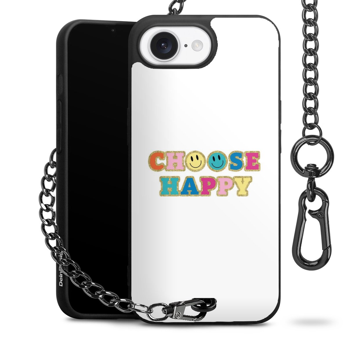 Die mattschwarze Silikon-Handyhülle besteht aus robustem TPU (thermoplastisches Polyurethan). Sie ist flexibel und schützt Dein Smartphone vor Stößen und Kratzern. Die Kette sowie der Karabinerhaken sind aus Metall in Gunmetal-Optik gefertigt. Für dieses Produkt kommen ausschließlich TÜV-geprüfte Materialien zum Einsatz.