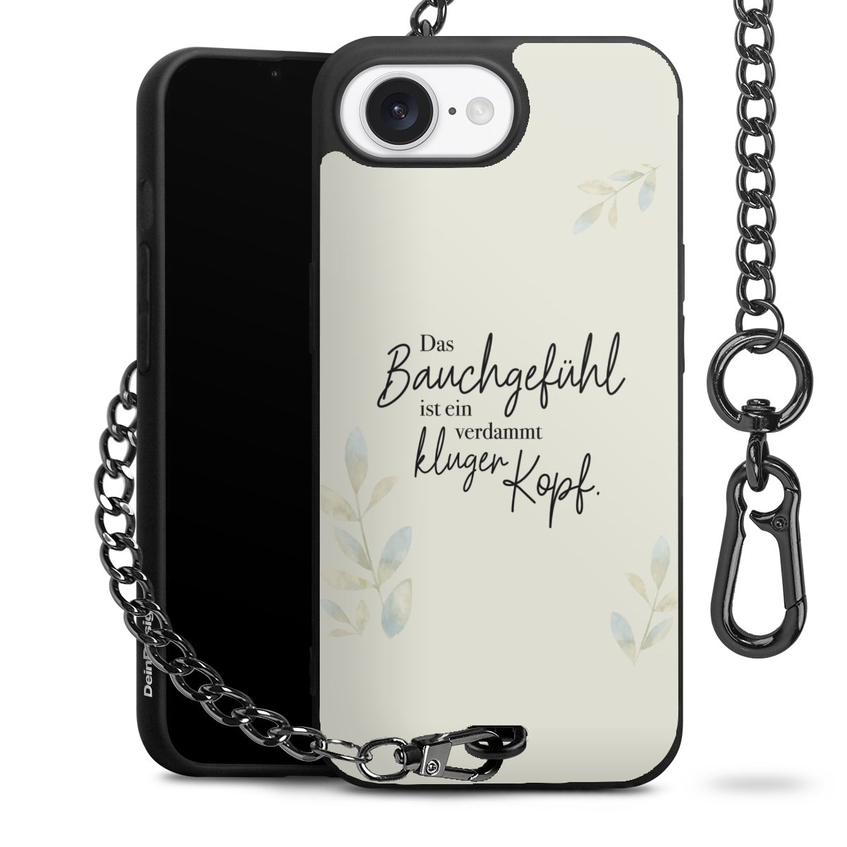 Die mattschwarze Silikon-Handyhülle besteht aus robustem TPU (thermoplastisches Polyurethan). Sie ist flexibel und schützt Dein Smartphone vor Stößen und Kratzern. Die Kette sowie der Karabinerhaken sind aus Metall in Gunmetal-Optik gefertigt. Für dieses Produkt kommen ausschließlich TÜV-geprüfte Materialien zum Einsatz.