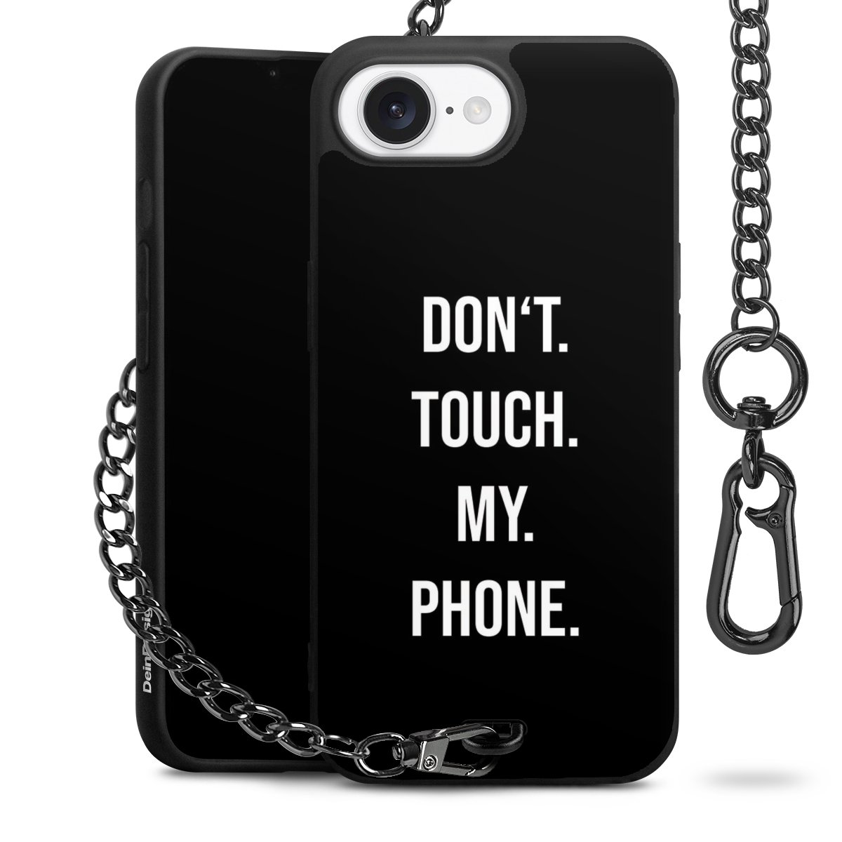 Die mattschwarze Silikon-Handyhülle besteht aus robustem TPU (thermoplastisches Polyurethan). Sie ist flexibel und schützt Dein Smartphone vor Stößen und Kratzern. Die Kette sowie der Karabinerhaken sind aus Metall in Gunmetal-Optik gefertigt. Für dieses Produkt kommen ausschließlich TÜV-geprüfte Materialien zum Einsatz.