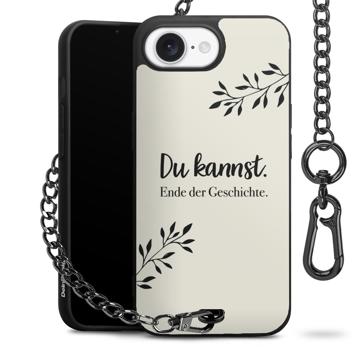 Die mattschwarze Silikon-Handyhülle besteht aus robustem TPU (thermoplastisches Polyurethan). Sie ist flexibel und schützt Dein Smartphone vor Stößen und Kratzern. Die Kette sowie der Karabinerhaken sind aus Metall in Gunmetal-Optik gefertigt. Für dieses Produkt kommen ausschließlich TÜV-geprüfte Materialien zum Einsatz.