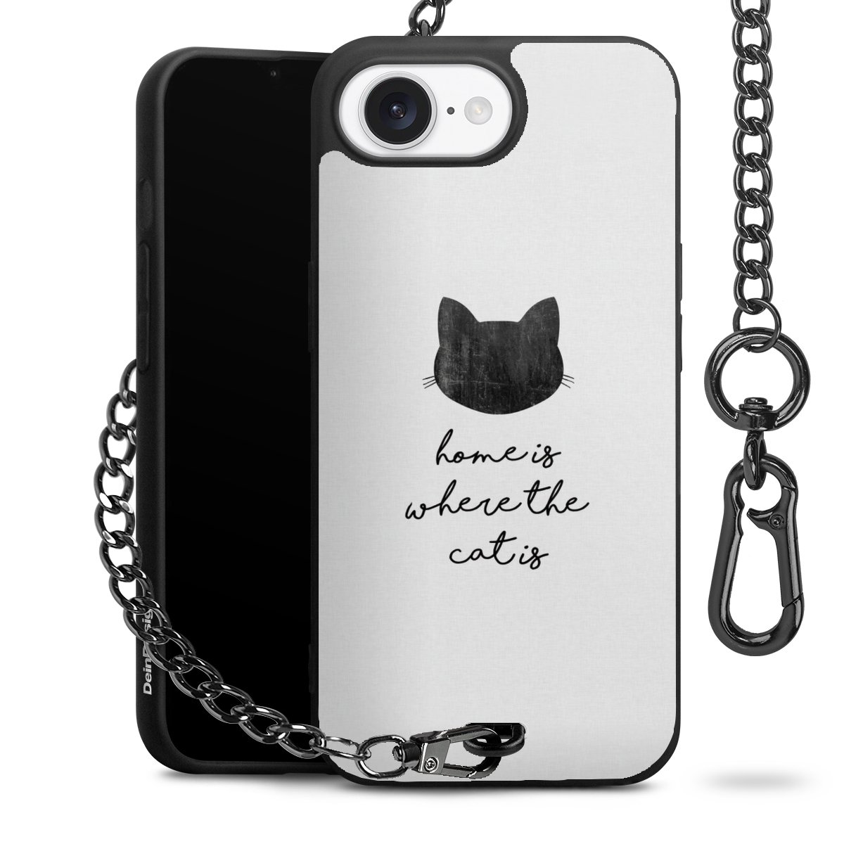 Die mattschwarze Silikon-Handyhülle besteht aus robustem TPU (thermoplastisches Polyurethan). Sie ist flexibel und schützt Dein Smartphone vor Stößen und Kratzern. Die Kette sowie der Karabinerhaken sind aus Metall in Gunmetal-Optik gefertigt. Für dieses Produkt kommen ausschließlich TÜV-geprüfte Materialien zum Einsatz.
