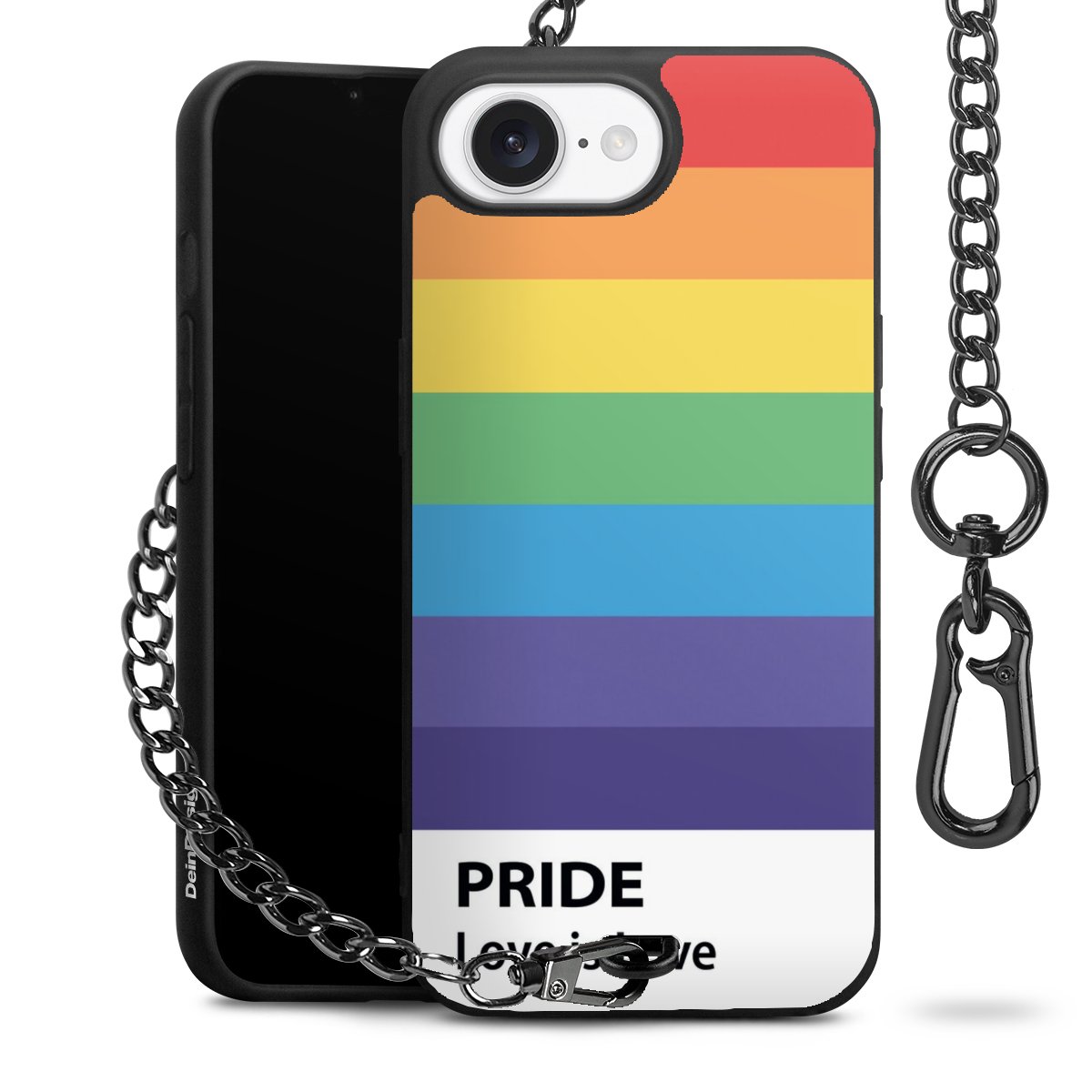 Die mattschwarze Silikon-Handyhülle besteht aus robustem TPU (thermoplastisches Polyurethan). Sie ist flexibel und schützt Dein Smartphone vor Stößen und Kratzern. Die Kette sowie der Karabinerhaken sind aus Metall in Gunmetal-Optik gefertigt. Für dieses Produkt kommen ausschließlich TÜV-geprüfte Materialien zum Einsatz.