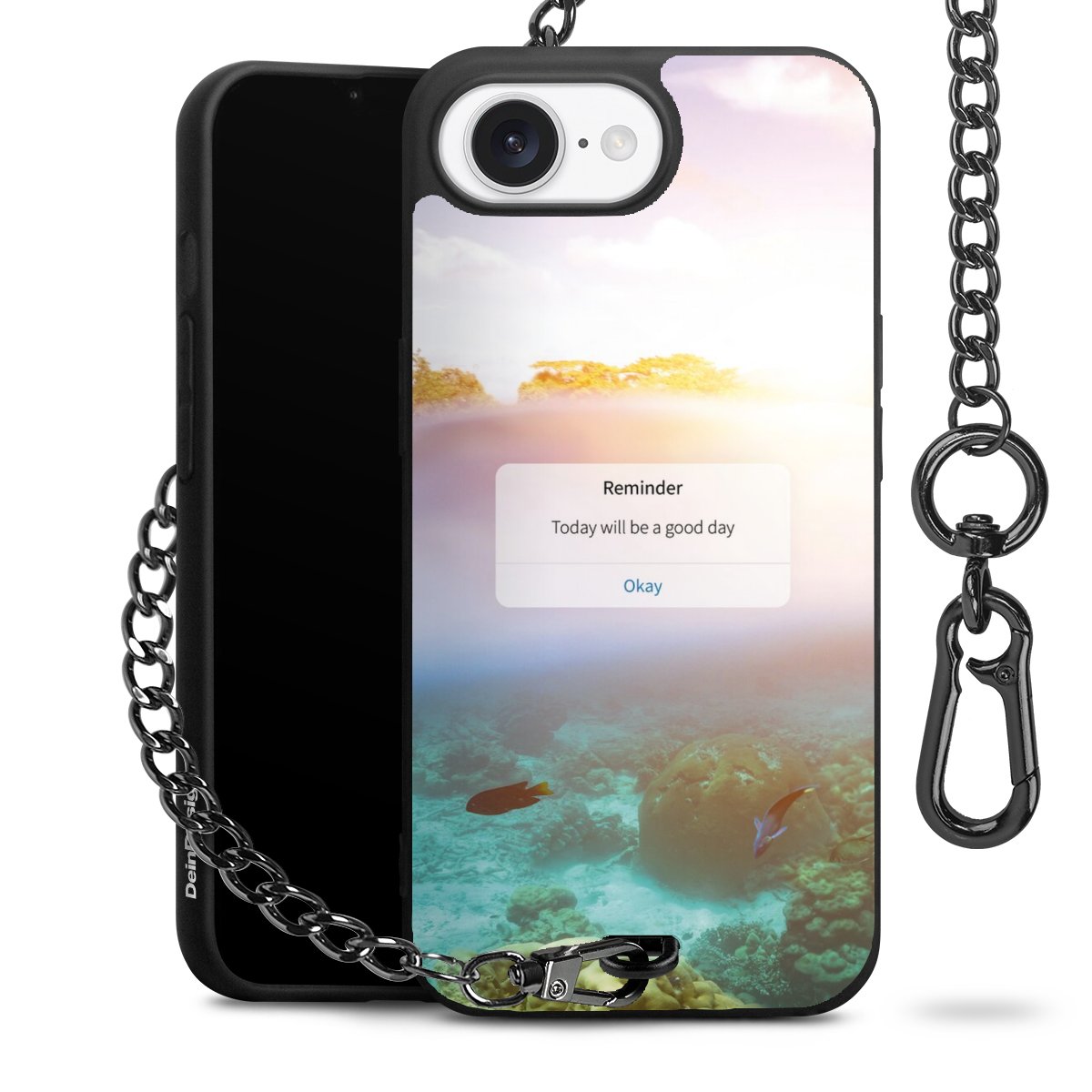 Die mattschwarze Silikon-Handyhülle besteht aus robustem TPU (thermoplastisches Polyurethan). Sie ist flexibel und schützt Dein Smartphone vor Stößen und Kratzern. Die Kette sowie der Karabinerhaken sind aus Metall in Gunmetal-Optik gefertigt. Für dieses Produkt kommen ausschließlich TÜV-geprüfte Materialien zum Einsatz.