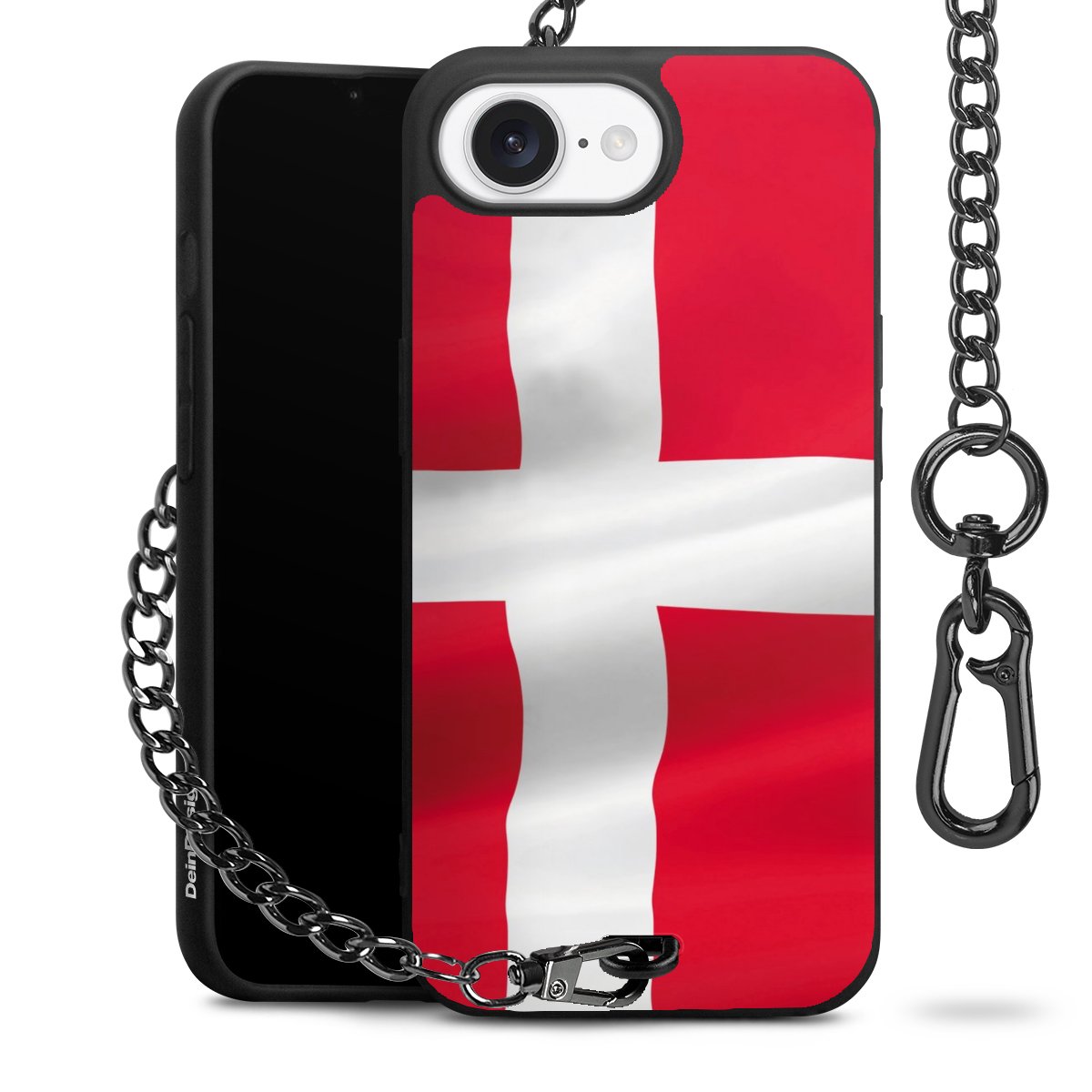 Die mattschwarze Silikon-Handyhülle besteht aus robustem TPU (thermoplastisches Polyurethan). Sie ist flexibel und schützt Dein Smartphone vor Stößen und Kratzern. Die Kette sowie der Karabinerhaken sind aus Metall in Gunmetal-Optik gefertigt. Für dieses Produkt kommen ausschließlich TÜV-geprüfte Materialien zum Einsatz.