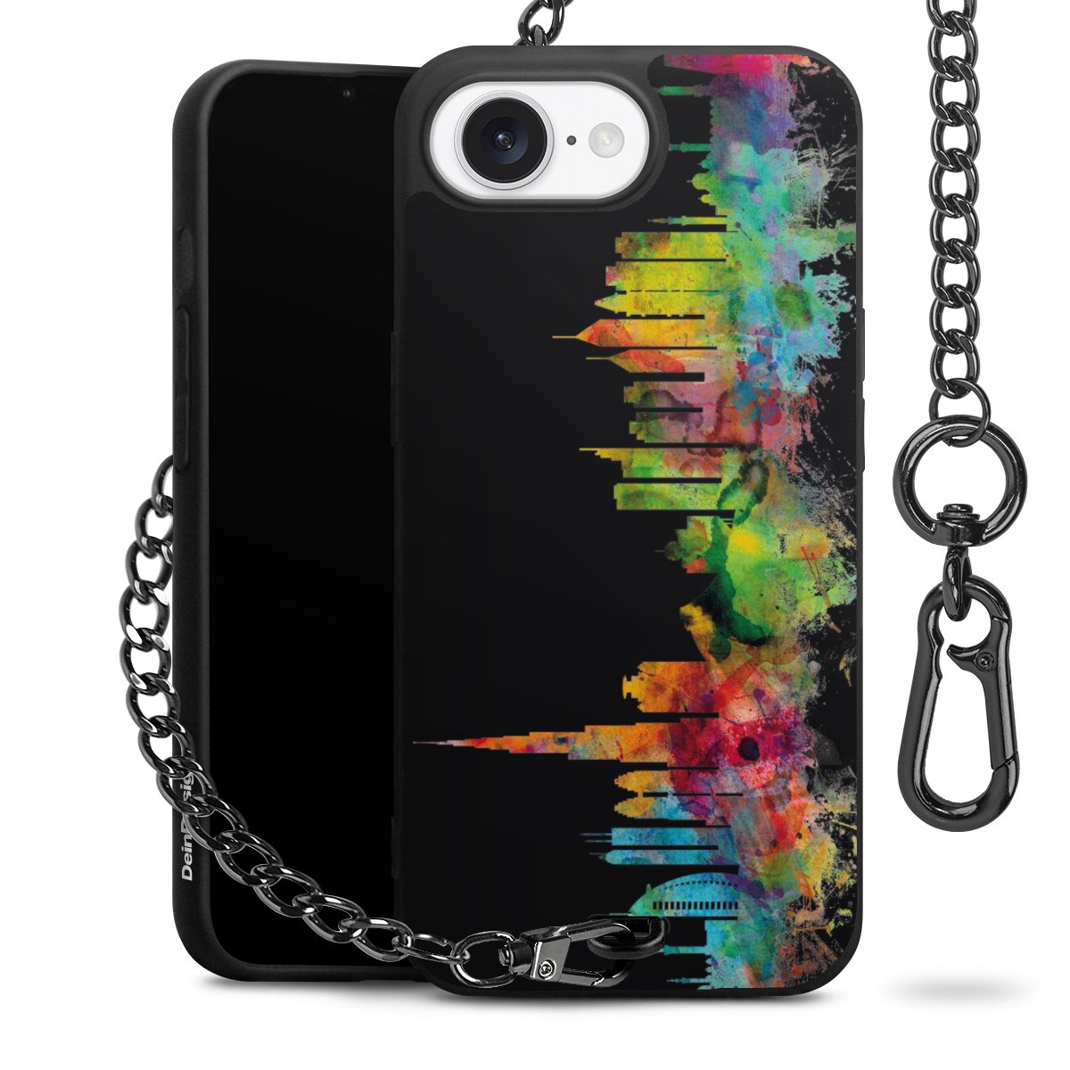 Die mattschwarze Silikon-Handyhülle besteht aus robustem TPU (thermoplastisches Polyurethan). Sie ist flexibel und schützt Dein Smartphone vor Stößen und Kratzern. Die Kette sowie der Karabinerhaken sind aus Metall in Gunmetal-Optik gefertigt. Für dieses Produkt kommen ausschließlich TÜV-geprüfte Materialien zum Einsatz.