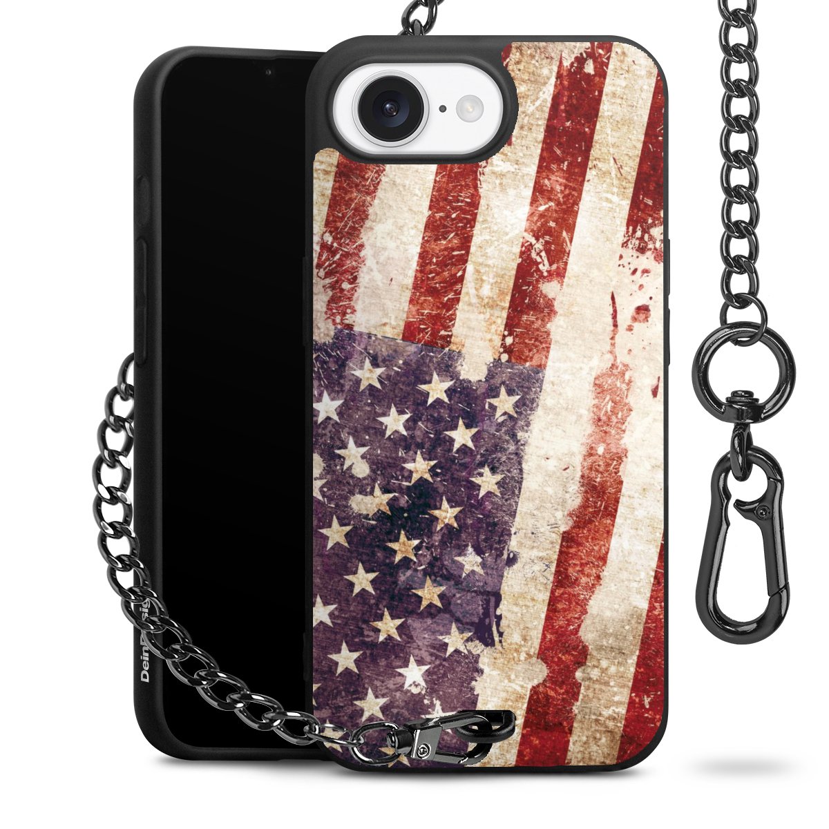 - Mattschwarze Handyhülle mit Metallkette
