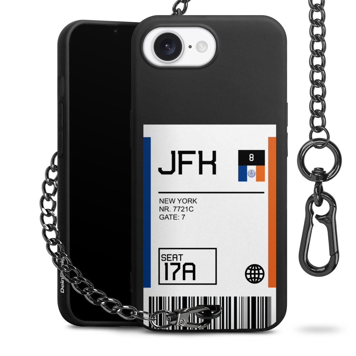 - Mattschwarze Handyhülle mit Metallkette