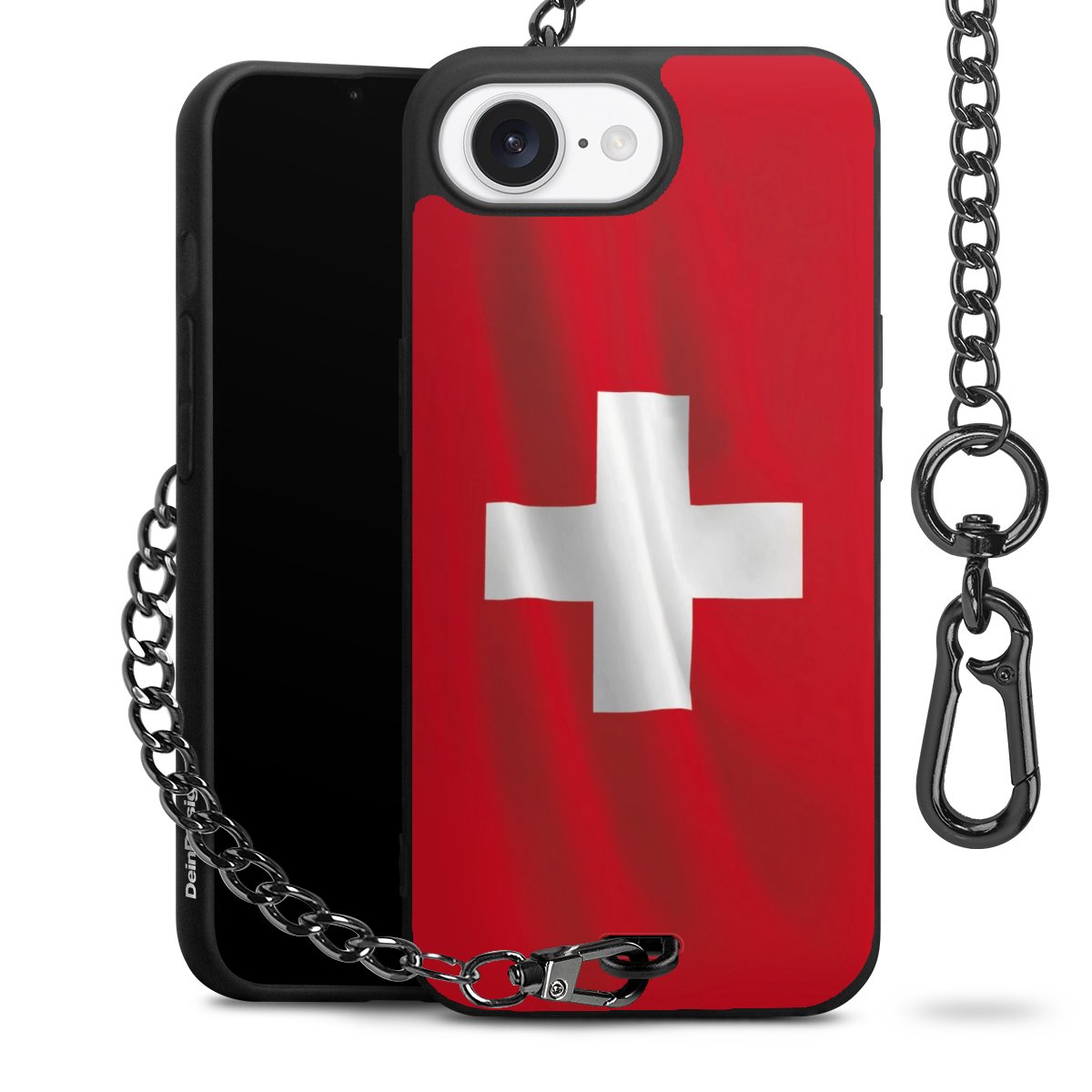 Die mattschwarze Silikon-Handyhülle besteht aus robustem TPU (thermoplastisches Polyurethan). Sie ist flexibel und schützt Dein Smartphone vor Stößen und Kratzern. Die Kette sowie der Karabinerhaken sind aus Metall in Gunmetal-Optik gefertigt. Für dieses Produkt kommen ausschließlich TÜV-geprüfte Materialien zum Einsatz.