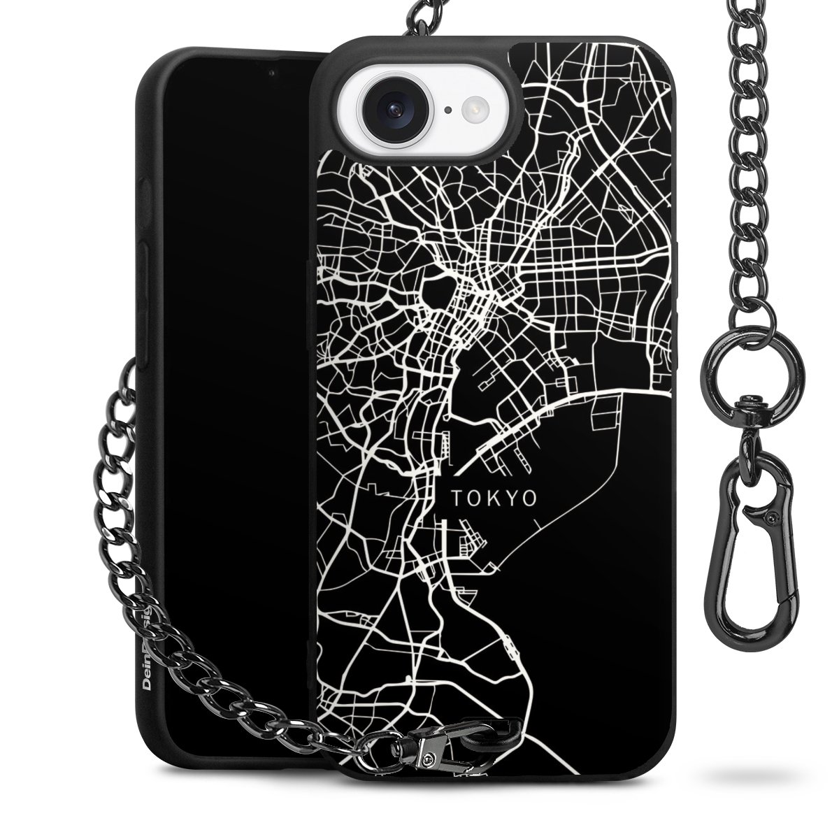 Die mattschwarze Silikon-Handyhülle besteht aus robustem TPU (thermoplastisches Polyurethan). Sie ist flexibel und schützt Dein Smartphone vor Stößen und Kratzern. Die Kette sowie der Karabinerhaken sind aus Metall in Gunmetal-Optik gefertigt. Für dieses Produkt kommen ausschließlich TÜV-geprüfte Materialien zum Einsatz.